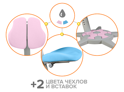 Растущее кресло Mealux ErgoKids Jasper Duo Multicolor подходит для детей в возрасте от пяти лет и старше. Особенность данной модели — наличие дополнительных декоративных накладок и чехлов, с помощью которых можно менять цвет кресла. В комплекте съемные чехлы для спинки и сиденья, а также декоративные накладки на основание розового и голубого цвета.
