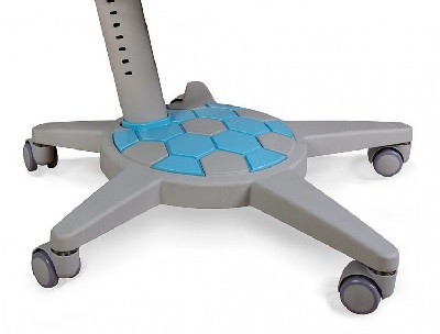 Пятилучевая крестовина гарантирует устойчивость кресла. Декоративную накладку на основание в виде футбольного мяча можно поменять на розовую или голубую. Колесики оснащены автоматическими стопорами, срабатывающими при определенной нагрузке. Движение кресла блокируется, и ребенок не сможет кататься на нем по комнате, отвлекаясь от выполнения домашних заданий.