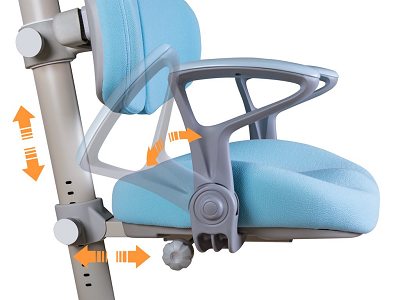 Независимая регулировка высоты сиденья и спинки, а также глубины посадки позволяет адаптировать кресло под индивидуальные особенности фигуры ребенка и корректировать настройки по мере его роста. Важным дополнением к креслу является наличие съемных откидных подлокотников. При необходимости подлокотники можно легко снять и потом так же легко снова закрепить на каркасе кресла.