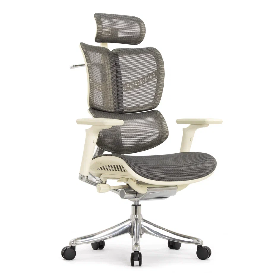 Уникальная ортопедическая спинка, состоящая из двух крыльев на подвижных креплениях и поясничного валика, обеспечивает постоянный контакт спины сидящего со спинкой кресла. Два верхних крыла не дают пользователю склониться на одну сторону и держат спину в правильном положении. Активный поясничный валик снижает осевую нагрузку и не позволяет сидеть ссутулившись. Высоту спинки можно настраивать под рост пользователя.