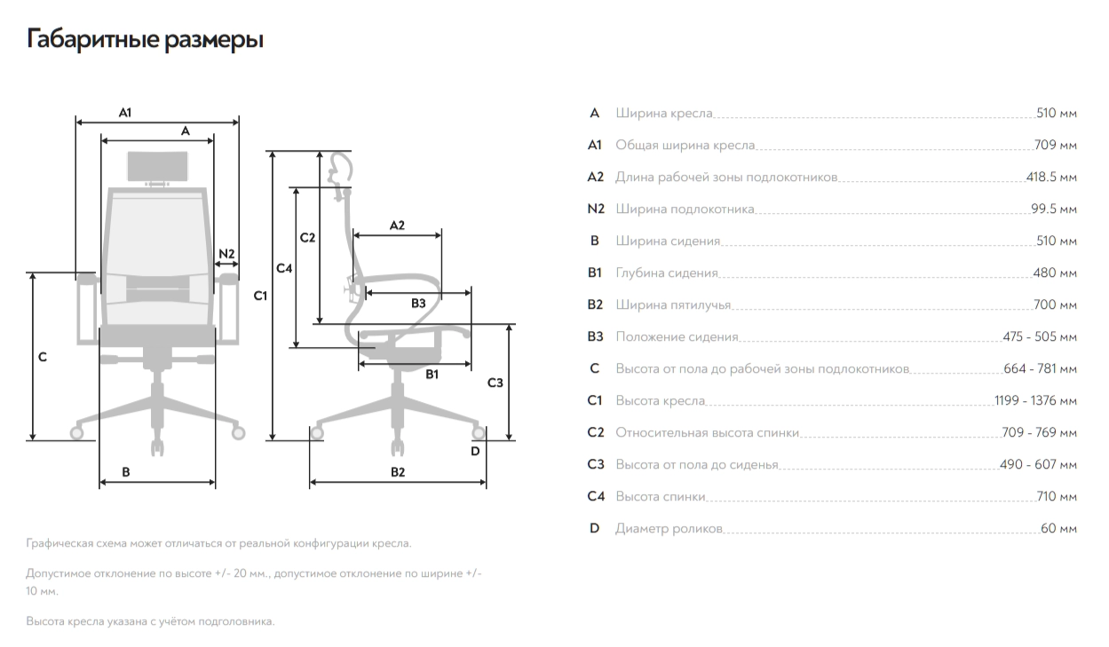 Высота кресла: 1199-1376 мм