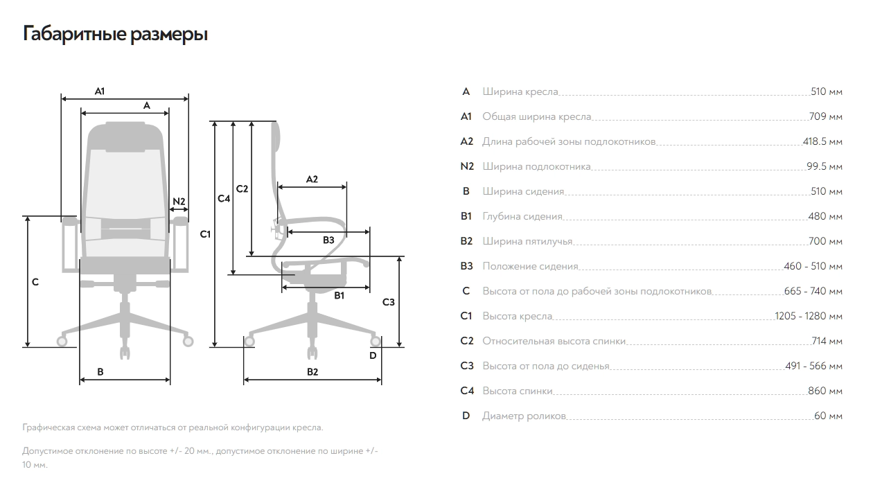 Высота кресла: 1205-1280 мм