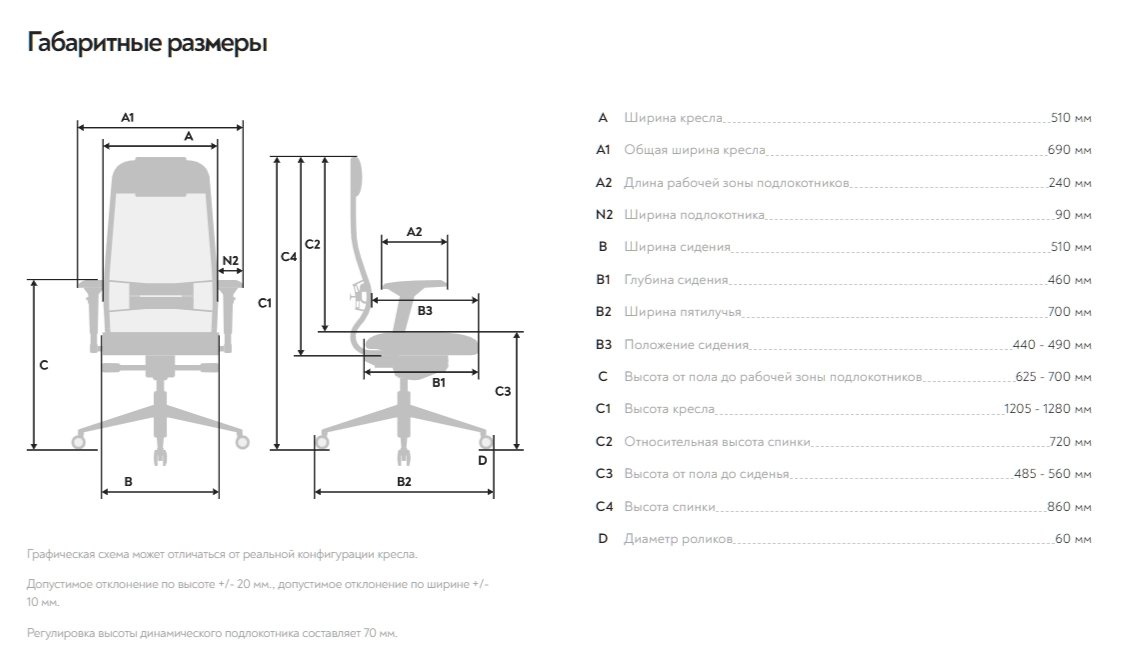 - Регулировка подлокотников по высоте, глубине и углу поворота