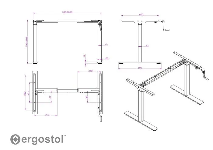 Рама для стола с ручной регулировкой Ergostol Handle S3