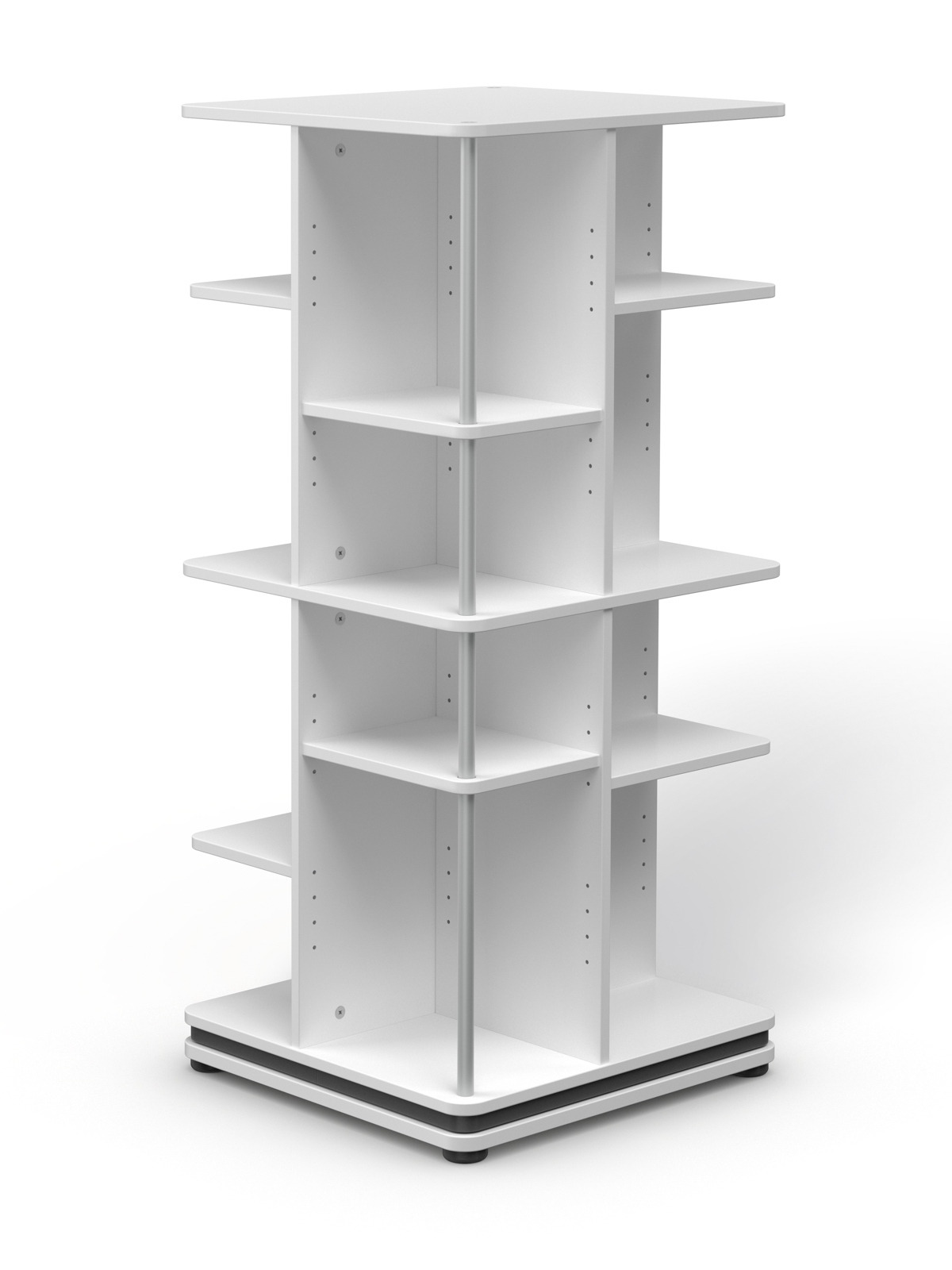 Вращающийся стеллаж moll Tower 56 с надстройкой — это современная система хранения в виде модульной башни, которая может вместить много нужных предметов. Универсальный дизайн стеллажа позволяет установить его в любом помещении: в детской комнате или рабочем кабинете, в библиотеке, кухне или кладовой. Конструкция состоит из поворотного основания, базового модуля с 4 полками, надстройки с 4 полками и верхней панели. Полки изготовлены из высококачественной ДСП стандарта CARB II с меламиновым покрытием. Их можно устанавливать на разной высоте.