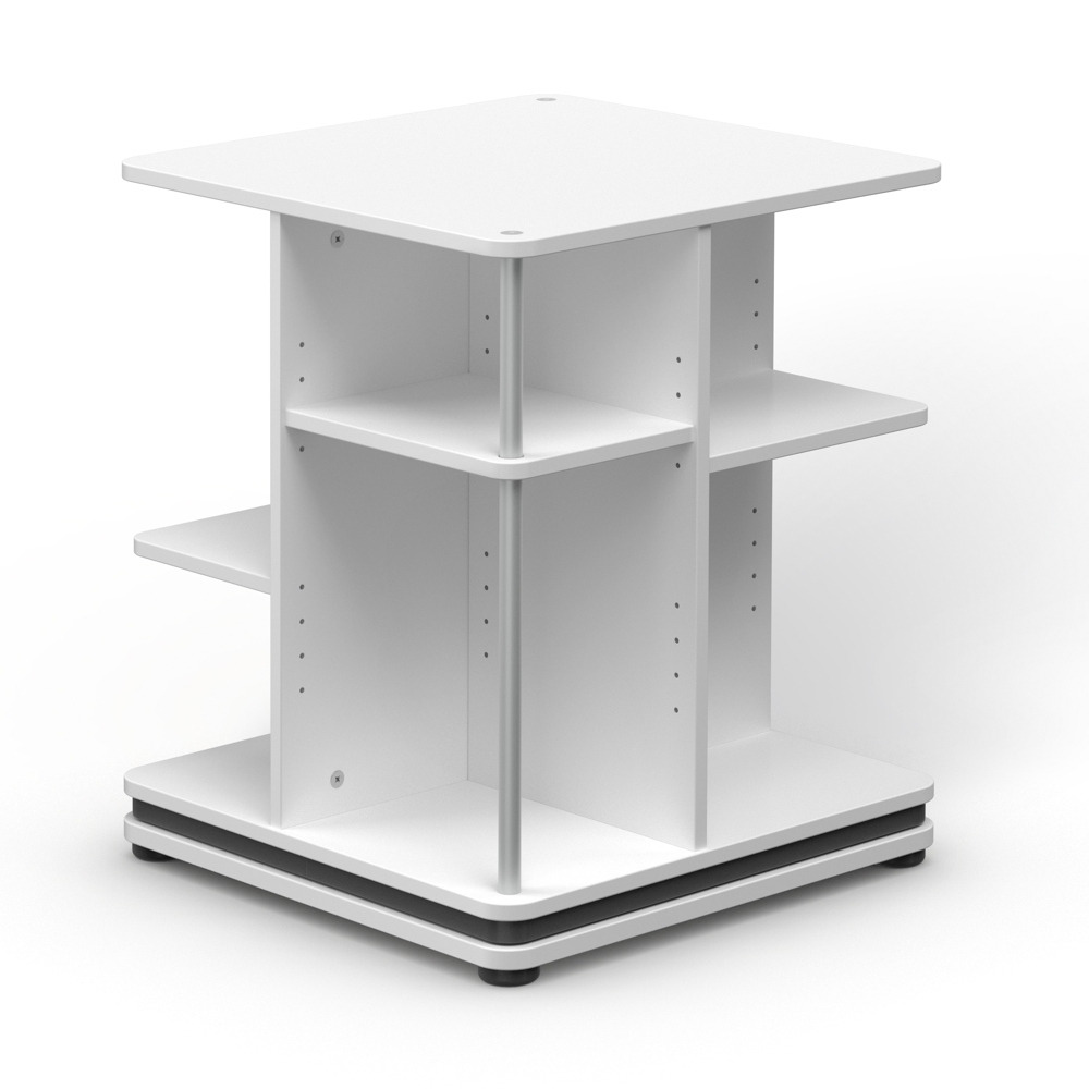 Вращающийся квадратный стеллаж moll Tower 56 — это современная система хранения в виде модульной башни, которая занимает всего 0,3 кв.м, но при этом может вместить много нужных предметов. Универсальный дизайн стеллажа позволяет установить его в любом помещении: в детской комнате или рабочем кабинете, в библиотеке, кухне или кладовой. Базовая конструкция высотой 67 см состоит из поворотного основания и модуля 1, включающего 4 полки с переменной высотой и верхнюю панель. Полки изготовлены из высококачественной ДСП стандарта CARB II с меламиновым покрытием и кромкой из ABS-пластика толщиной 2 мм.