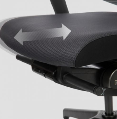 Сиденье легко регулируется по высоте и глубине (слайдер). Наполнитель из формованного вспененного полиуретана обеспечивает достаточно жесткую, но комфортную посадку. Он равномерно распределяет вес тела и не дает усадки даже через несколько лет интенсивного использования. И наполнитель, и обивочная ткань обладают хорошей воздухопроницаемостью.
