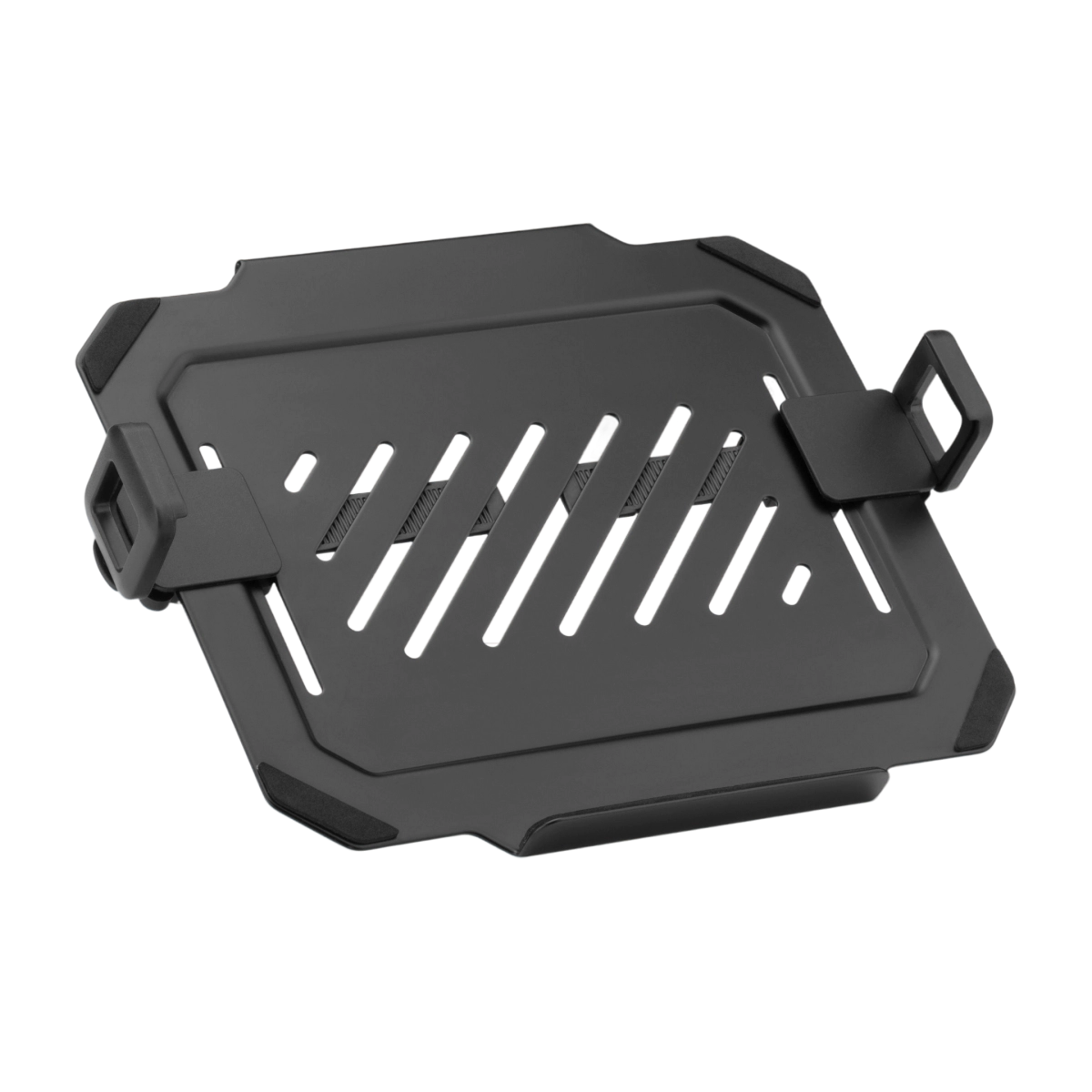 Благодаря регулируемым зажимам с кабель-каналами площадка адаптируется под разные ноутбуки диагональю от 12 до 17 дюймов, выдерживает вес до 9 кг. Панель с прорезями обеспечивает циркуляцию воздуха, предотвращая перегрев устройства и продлевая срок службы ноутбука. Передний бортик-упор высотой 2 см удерживает ноутбук от случайного соскальзывания. Силиконовые накладки также препятствуют соскальзыванию и защищают корпус от царапин. Держатель легко устанавливается на кронштейн (крепеж в комплекте). Кронштейн в комплект не входит и приобретается отдельно.