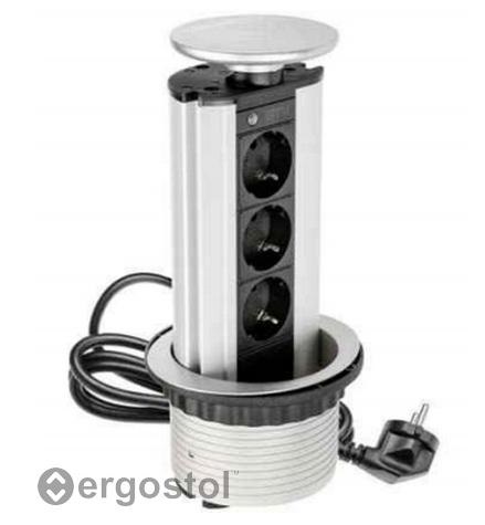 Выдвижной блок из трех розеток с заземлением удобен и прост в эксплуатации. Он встраивается в столешницу и при необходимости легко поднимается вверх, не занимая много места на столе. Выдвижной блок можно устанавливать везде, где нужен порядок на рабочем столе — дома, в офисе, в отеле, на кухне и т.д.